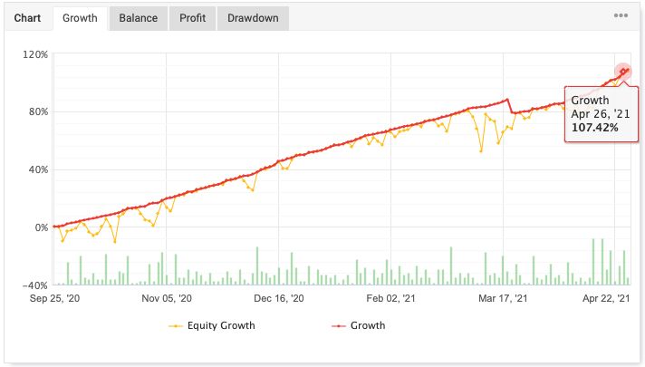 And we have also 100,000 USD real account with MG PRO with the same given settings to show our clients how reliable this EA is on large fund.